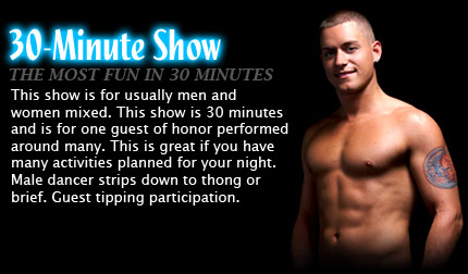 PARTY CONDUCT DISCLAIMER: All customers who book with us are to maintain a safe environment at all times for our dancers. At any time that the dancers feel harrased or threatened. They have the right to leave without any money for fees returned.